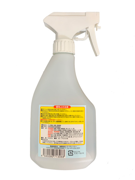 ■使用方法:先端部分をONに回して対象物から約20~30cm離して数回噴霧してください。使用後は必ず先端部分をOFFに戻してください。