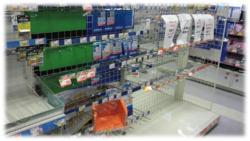 電気店では乾電池が売り切れて陳列棚が空に … 。