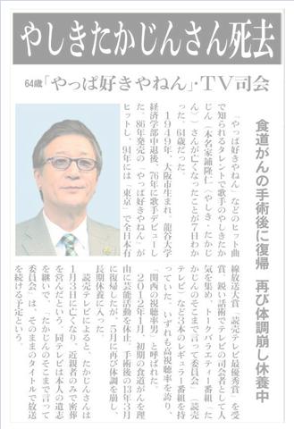 今月3日に亡くなっていたことが明らかになった やしき たかじん (家敷隆仁) さん。 64歳という若さで逝ってしまった突然の訃報に関係各位が連日コメントを寄せている。
